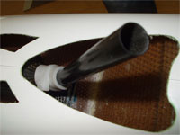 The composite Partner fuselage is a combination of carbon, carbon overlaid with foam and fiberglass, KevlarÒ, and Kevlar overlaid with foam and fiberglass. Wash the composite parts with warm soapy (dishwashing soap works well) water to remove residuals from the epoxy cure and rinse well. Washing helps ensure good glue adhesion to the fuselage composites.
