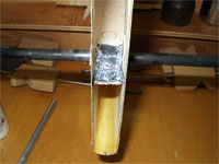 with the skin at the TE side of the hole. Trim the top of the dowel even with